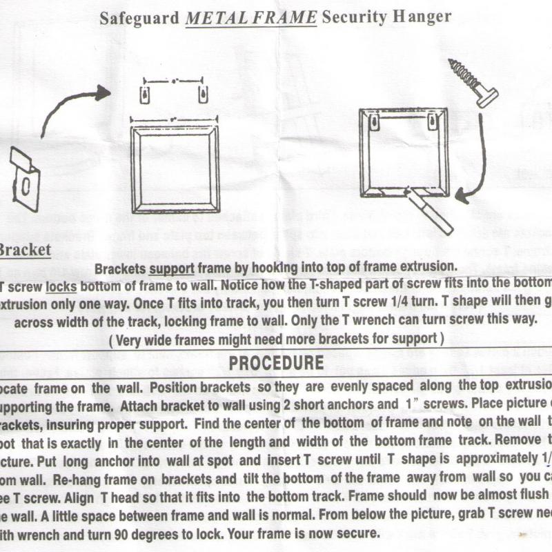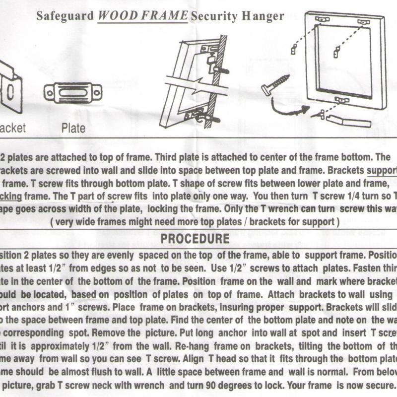 Данный подвес надежно фиксирует картину на плоскости и ее нельзя снять , не провернув винты нестандартным ключом, который идет в наборе.