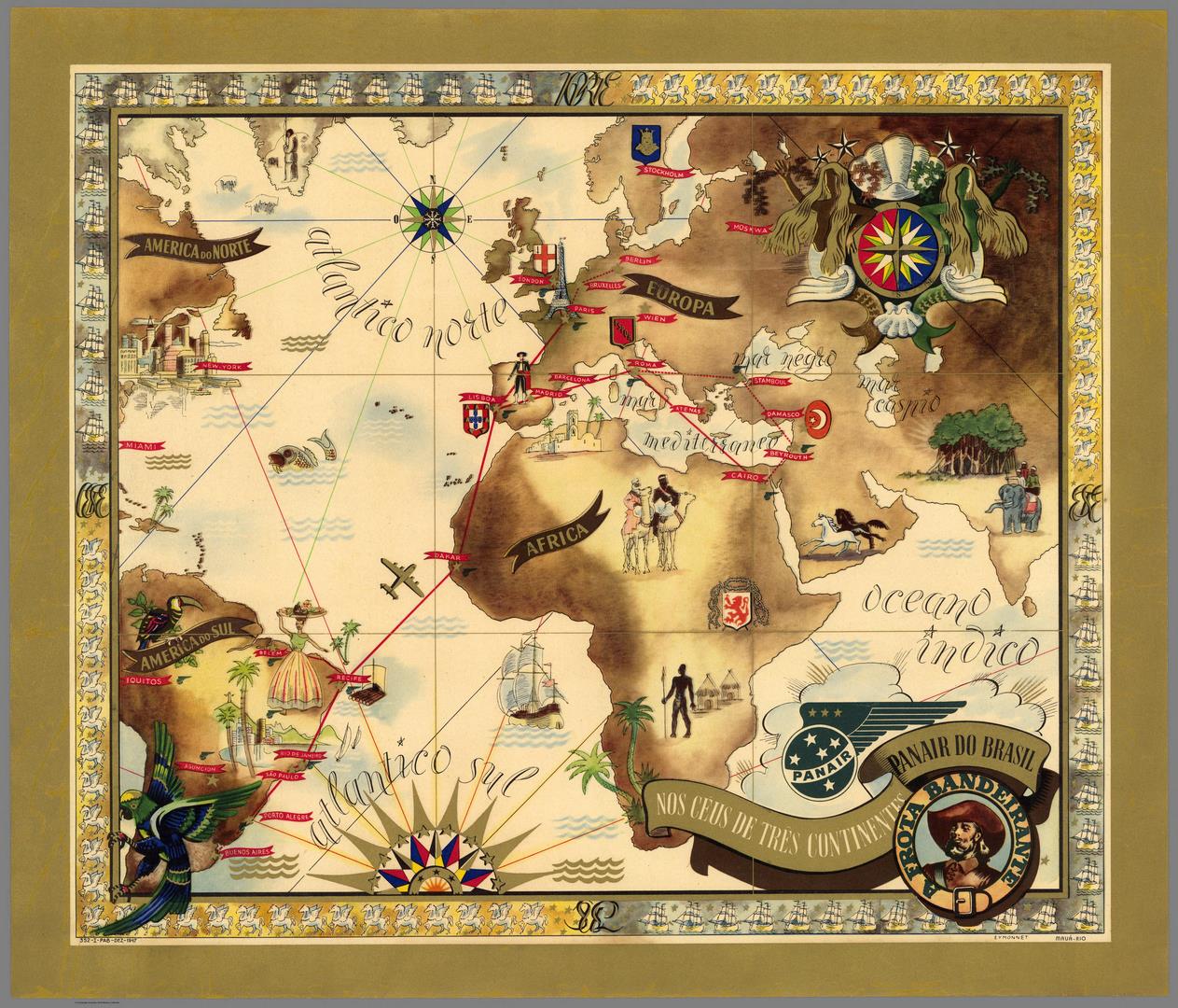 Карта мира созданная авиакомпанией в старинном стиле